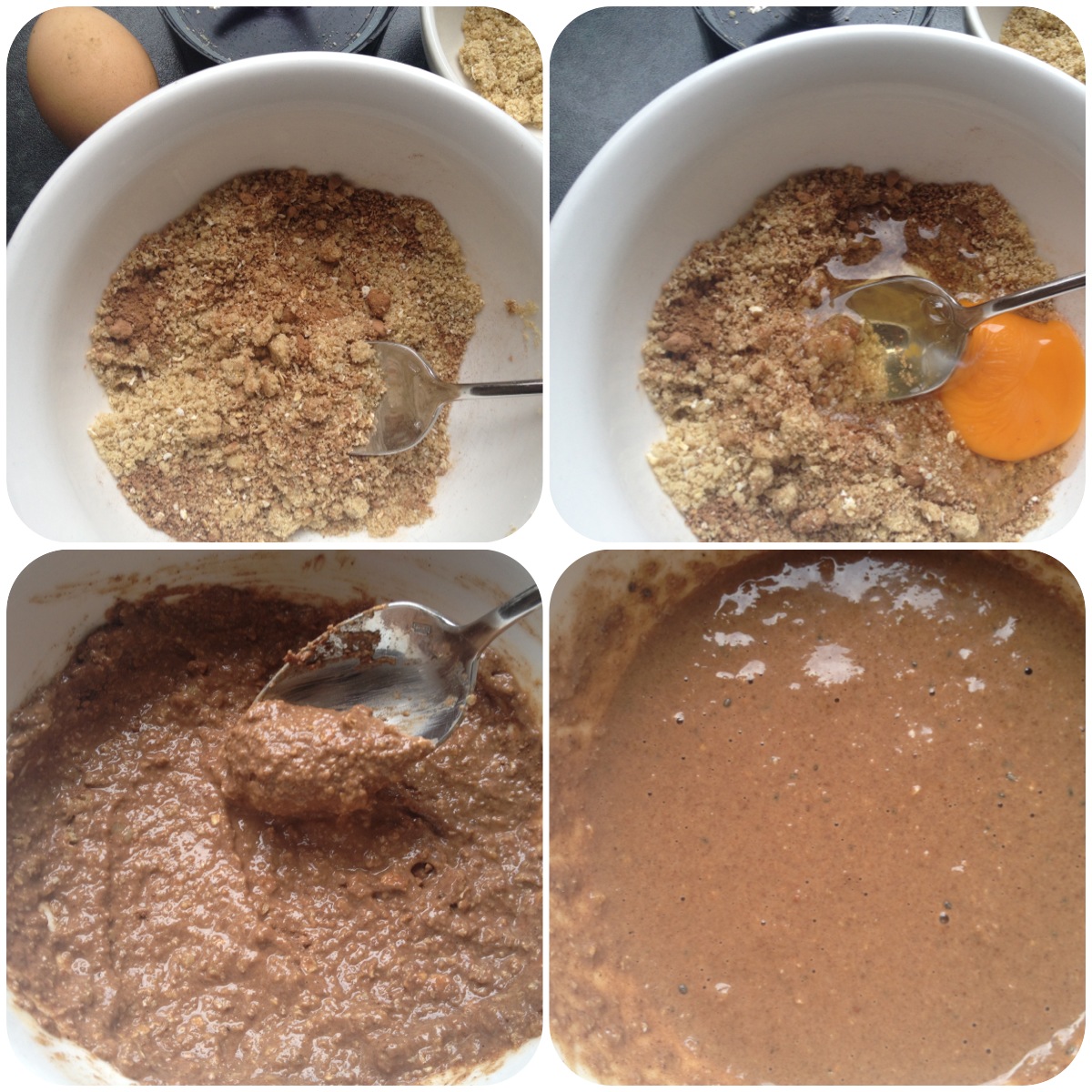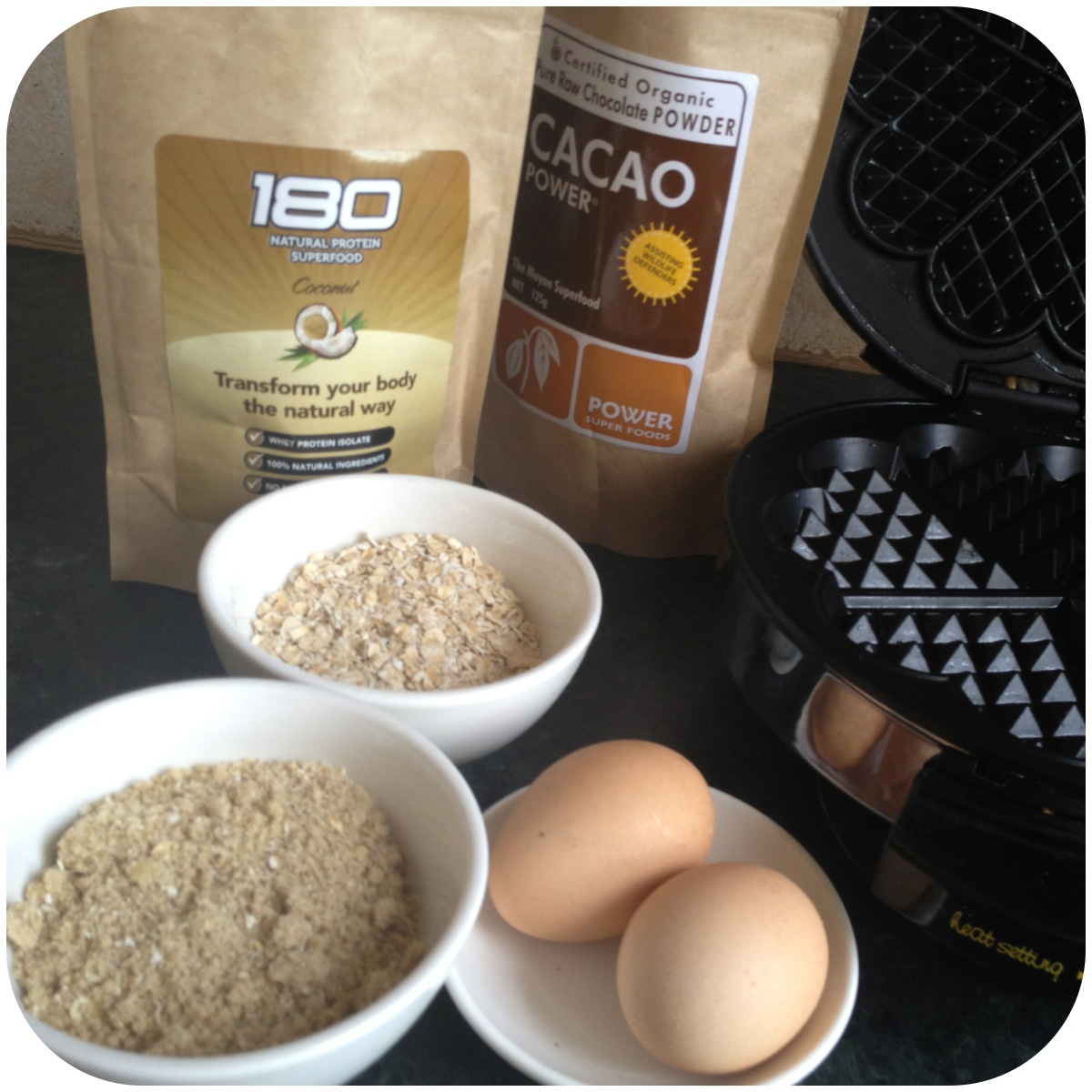 Mix dry ingredients well, add wet ingredients until you get a smooth batter for waffles (just thicker than my typical crepes mixture)