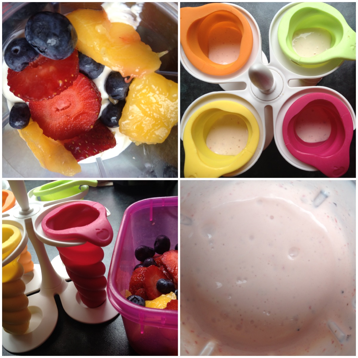 Tomorrow however they will have their frogurts and fruit ice pops which I have just finished preparing. Simple and fresh ingredients. Natural Greek yogurt, fresh fruit of your choice and (if using) honey.