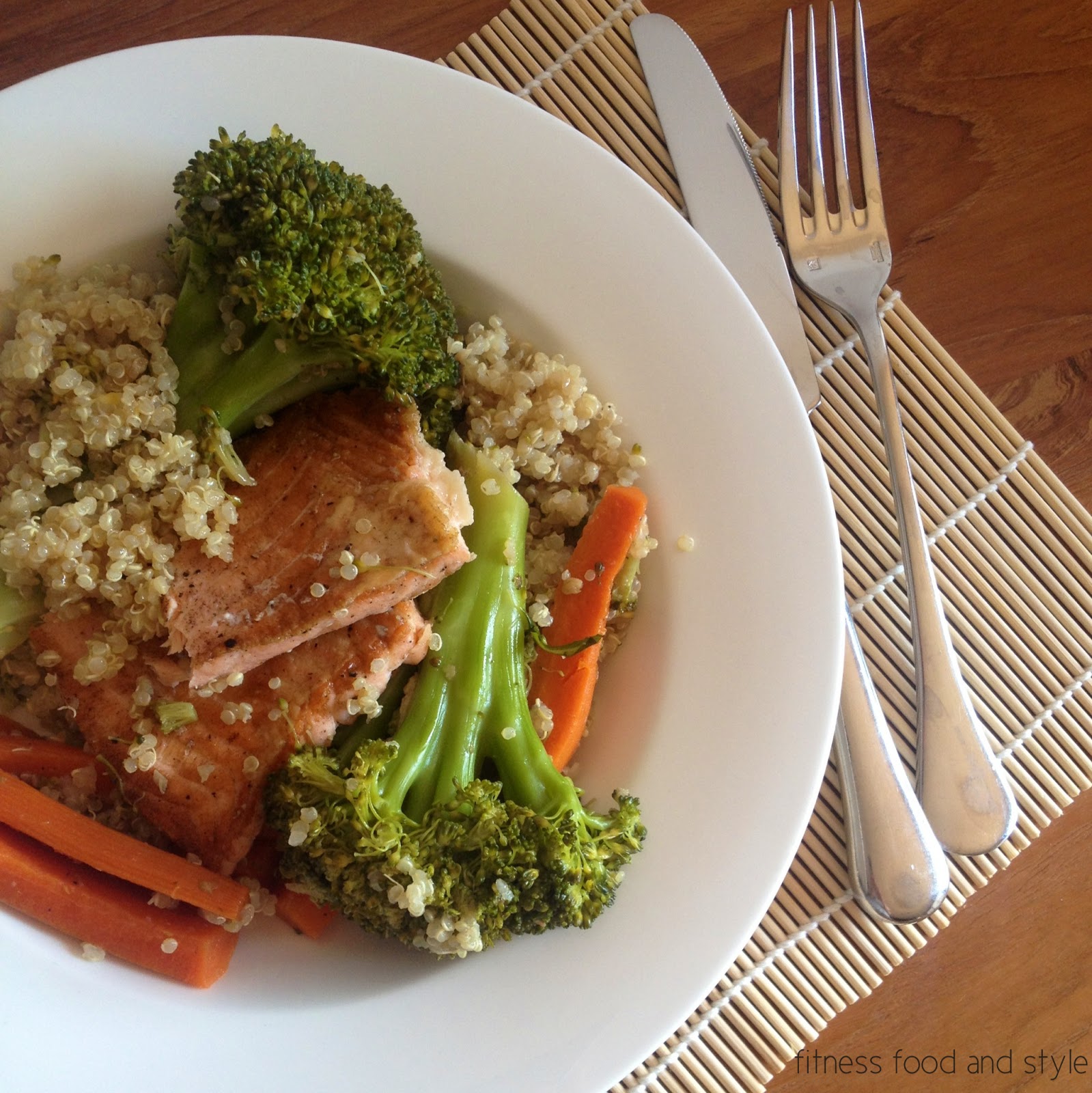 I experimented tonight as I typically make a big batch of quinoa so we have it for our breakfast and savoury meals. So once we grilled the salmon, I simply cooked the quinoa in chicken stock and with all the pan juices from the salmon, I mixed that with the quinoa. Added some lemon juice and then added the garlic sautéed broccoli and carrots in the mix and Mmmmmm.....tasty!!!!