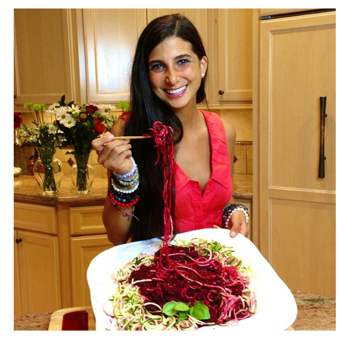 Kristina with her amazing fully raw Cinnamon Beetroot Basil Marinara