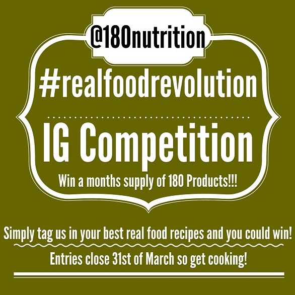 I am really happy that my male friends have also embraced this challenge and are doing their push ups. Take a look at @d_stinto and his superman push up!!! Ama-ZING!!! My friends over at 180 Nutrition are also running an IG competition this month in conjunction with our #pushupsgreens. Simply tag your food recipes to #realfoodrevolution for your chance to win a months supply of 180 Nutrition products. How unreal is that?