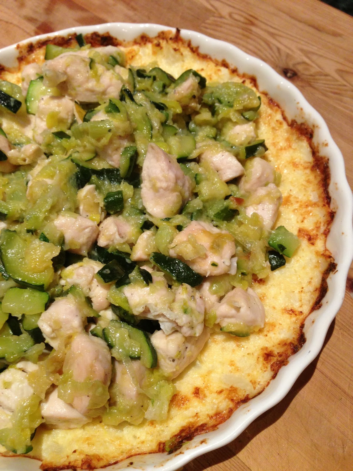 Typically we have pizza's on Friday night but I had a cauliflower in the fridge which I thought would make an ideal base for those traditional pastry quiche and pie bases. You know the ones with white flour, butter, eggs etc... well here's my super quick, healthy chicken quiche or pie version.