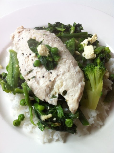 These are considered my cheat nights, where I just wrap the chicken in foil and spice accordingly, in a steamer beside the broccoli and peas whilst the rice cooker does it's magic. Then crumble feta cheese over it. There's no slaving over a hot stove for this ripper dinner!