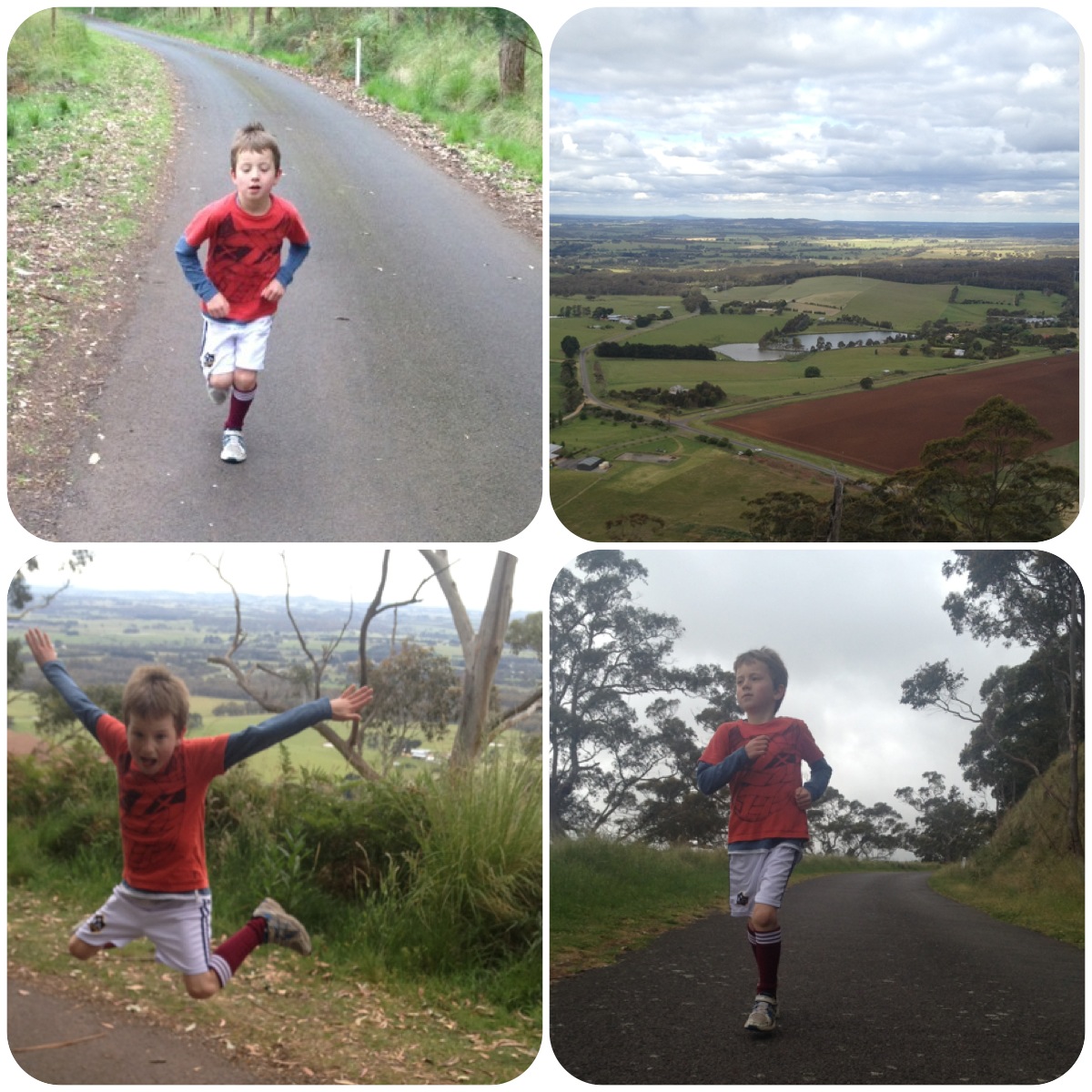 "C'mon Mum, we can run up that Mt Buningyong hill! Don't be scared!"