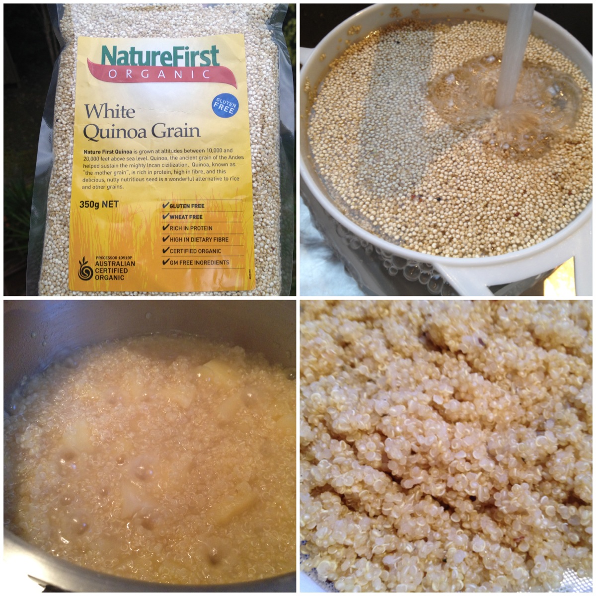That's how my kids pronounce it KEEN WHAA? We made a couple of dishes with the packet of quinoa we purchased (approx. $5) today and no, it's not cheap however I did make 2 meals out of the 1 packet. I have had my moments with quinoa, with it's peculiar taste however now I double and triple rinse it and cook it in either stock for savoury meals or natural fruit juice for breakfast meals. Our kids are loving it and tonight's meal got 2 plate serves.