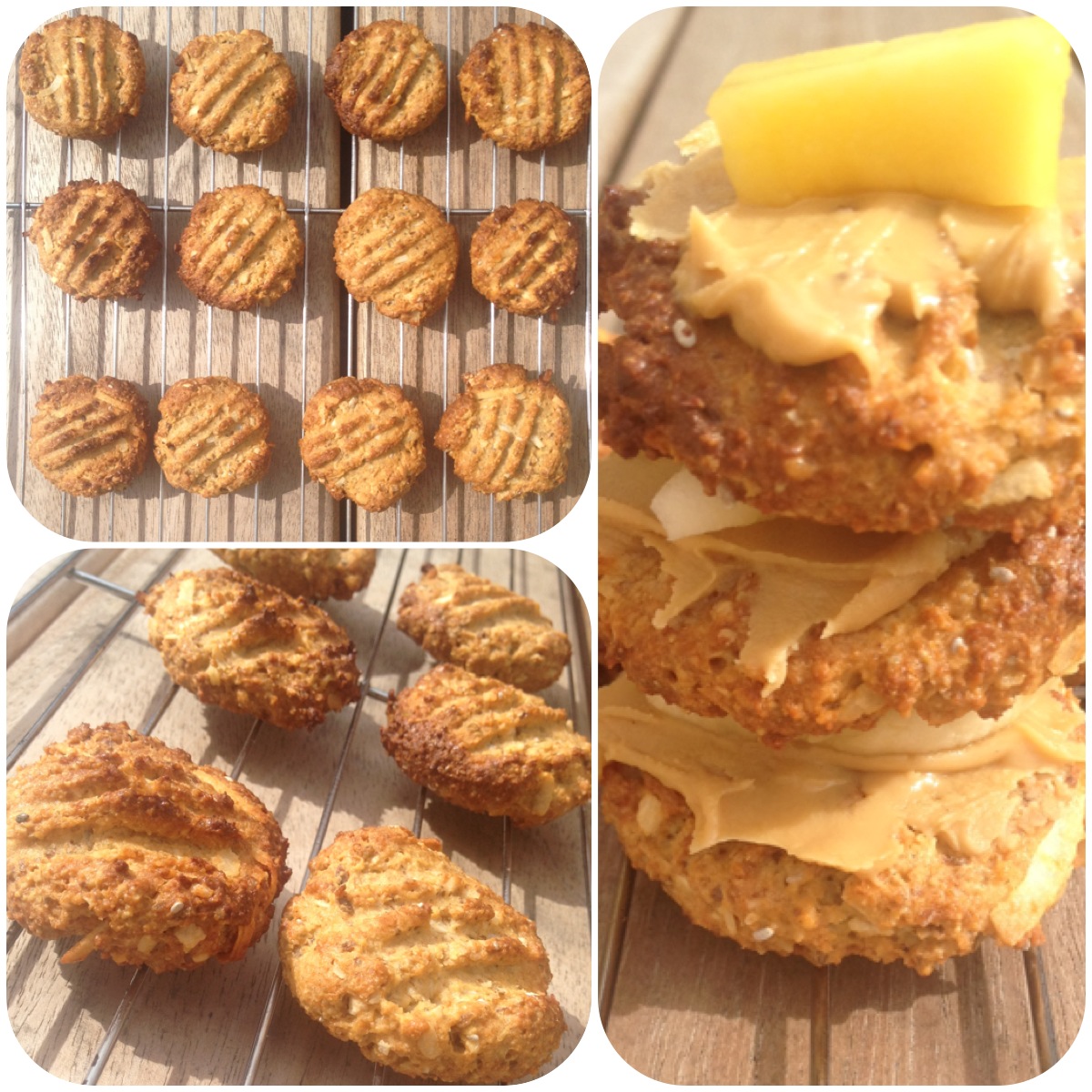 So what did I do yesterday? I baked them :-) however I substituted them with the fabulous 180 Nutrition coconut protein powder, mixed half oats and blended walnuts in fine flour and they came out SENSATIONAL!!!! We even spread peanut butter and placed fruit on them. Kids thought they'd make an Anzac tower.