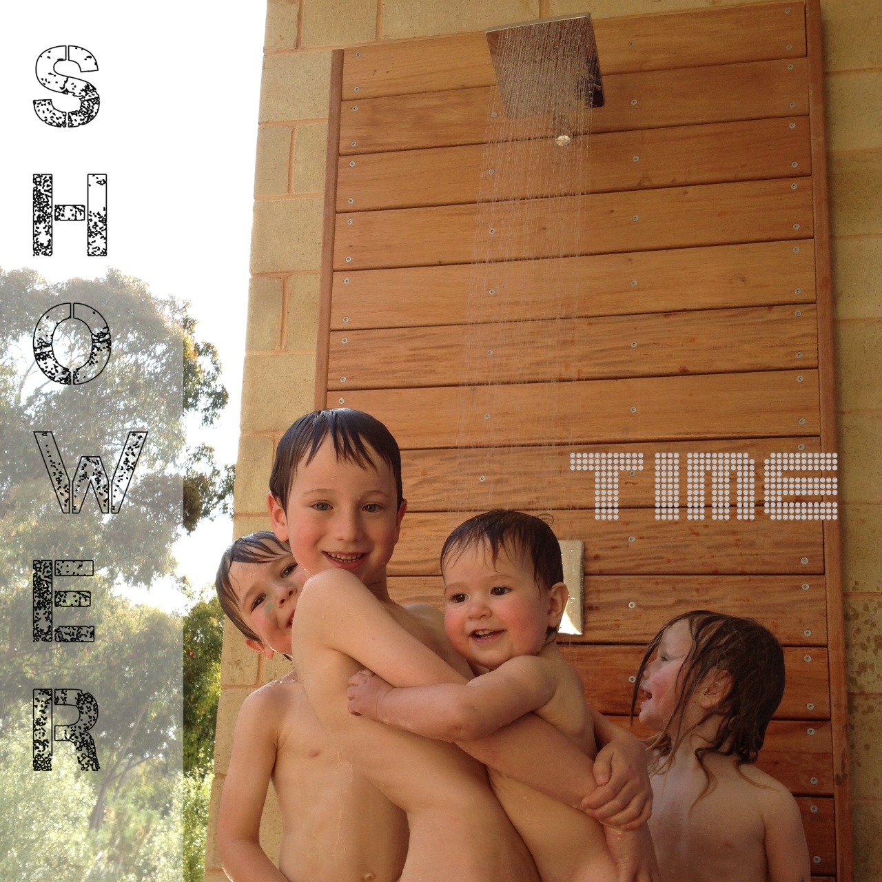 Who needs a pool, when you have an outdoor shower??? Kids had their first shower this afternoon in the sun....