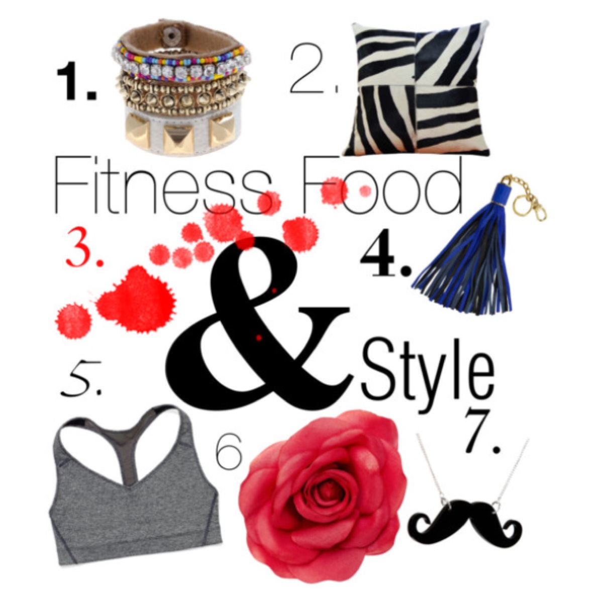 1. Bangles and bracelets 2. Cushions 3. Red 4. Fringe 5. Workout 6. Flowers 7. Moustache