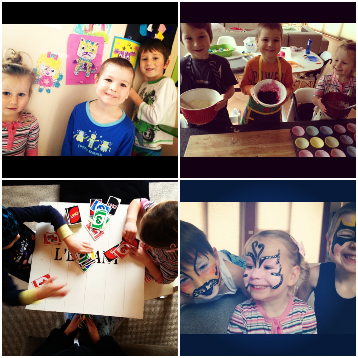 1. Foam art 2. baking 3. UNO card game 4. face painting by yours truly :-) |