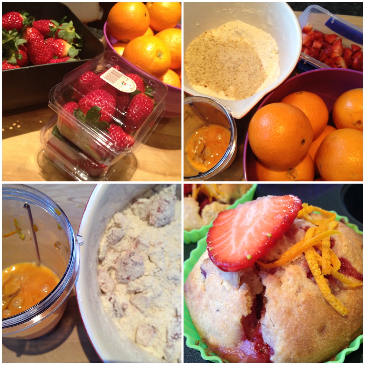 Mietta and I made some new strawberry with orange muffins this morning without sugar (I did put a drizzle of maple syrup in them) although with the very sweet strawbs I didn't need to put much. I based my recipe on the