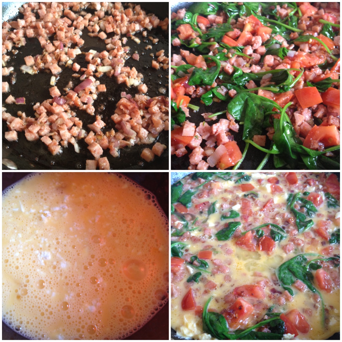 Ingredients Eggs Spinach Tomato Feta cheese Bacon Onion
